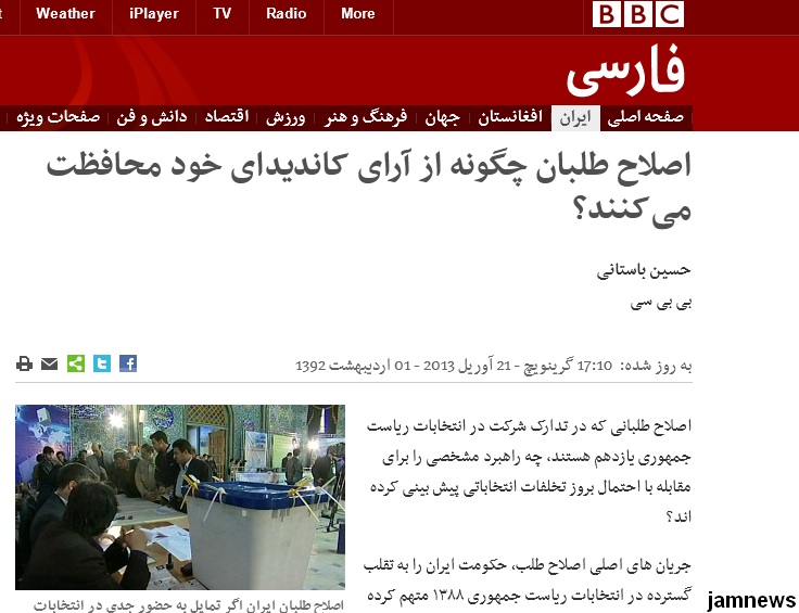 بی بی سی که در سال 88 بیشترین نقش را در القای"تقلب" در انتخابات و همچنین سازماندهی فتنه آمریکایی اسرائیلی بر عهده داشت با طرح این سوال که "اصلاح طلبانی که در تدارک شرکت در انتخابات ریاست جمهوری یازدهم هستند، چه راهبرد مشخصی را برای مقابله با احتمال بروز تخلفات انتخاباتی پیش بینی کرده اند؟" با تکرار ادعاهای سال 88 می نویسد: «جریان های اصلی اصلاح طلب، حکومت ایران را به تقلب گسترده در انتخابات ریاست جمهوری ۱۳۸۸ متهم کرده اند. پس از آن انتخابات، بخش قابل توجهی از افکار عمومی به صحت این اتهامات متقاعد شد که در به راه افتادن بزرگترین تظاهرات ضد دولتی تاریخ جمهوری اسلامی نمود داشت. با گذشت چهار سال از آن وقایع، اغلب اصلاح طلبان به این نتیجه رسیده اند که باید با یک کاندیدای واحد و قوی در انتخابات ریاست جمهوری حاضر شوند.